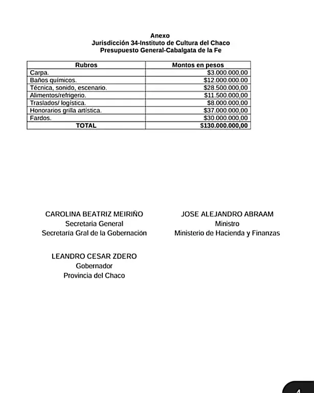 Lo que ha marcado cierto descontento dentro de la sociedad chaqueña, es la exorbitante cifra dineraria que fuera autorizada mediante un Decreto provincial que contendría la firma del mismo gobernador e integrantes de su gabinete, enmarcado en cuestiones administrativas legales y que sumarían unos $130.000.000, que, según el instrumento legal, se tendría en cuenta todo, incluida la alimentación para los equinos.