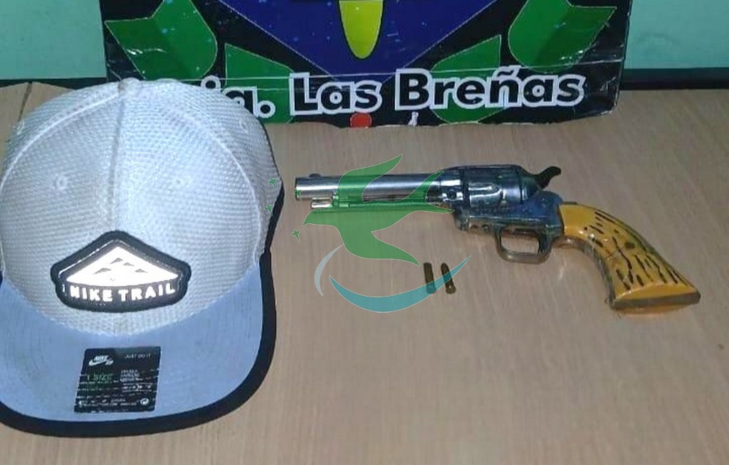 Luego de su identificación, los agentes del orden procedieron al cacheo y logrando el formal secuestro de un revólver marca Forastero calibre 22L, pavonado cromado con cachas de plástico color amarillo, tambor de seis alvéolos con dos cartuchos sin percutar de igual calibre, y sin numeración de serie visible. También se secuestró en esa instancia una gorra marca Nike Trail color blanco.