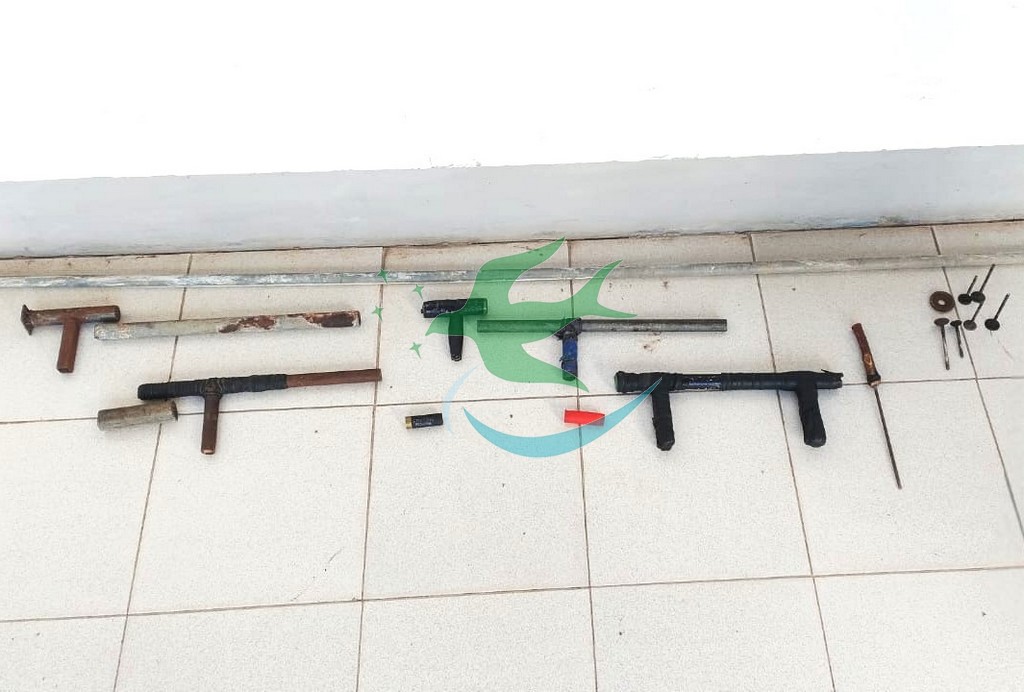En este último domicilio se logró el secuestro de unas 3 armas de fabricación caseras, 1 cartucho calibre 12, 1 caño de hierro de aproximadamente 3 metros, 1 parte posterior de una Tumbera.