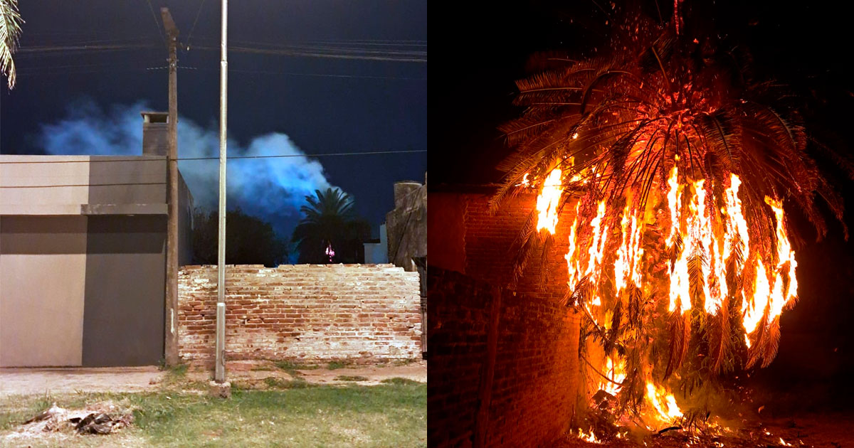 El episodio se produjo en un domicilio ubicado sobre calle Sarmiento, entre Urquiza y Estrada, donde vecinos advirtieron la presencia de llamas activas en una palmera situada dentro del predio.