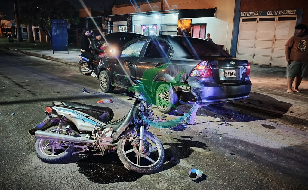 Cerca de las 23 horas, el personal policial fue alertado sobre un accidente de tránsito en la calle Leandro N. Alem, entre Manuel Estrada y Juan Ferrer. Al llegar al lugar, los efectivos constataron que el incidente tuvo como protagonistas a una motocicleta y un automóvil que se encontraba detenido.